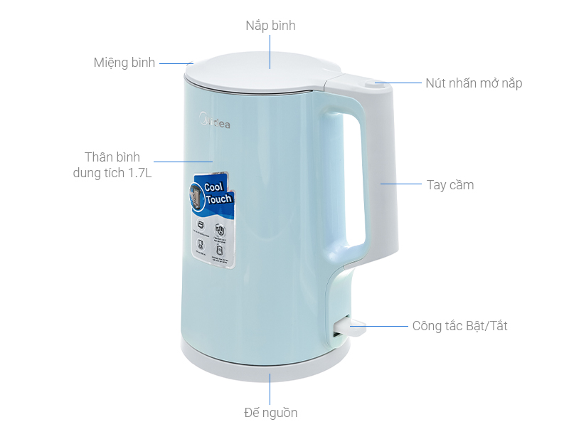 Bình đun siêu tốc Midea MK-17DG thiết kế hiện đại, trang nhã, tiện dụng, chất lượng tốt, độ bền cao và giá cả hợp túi tiền người tiêu dùng Việt.