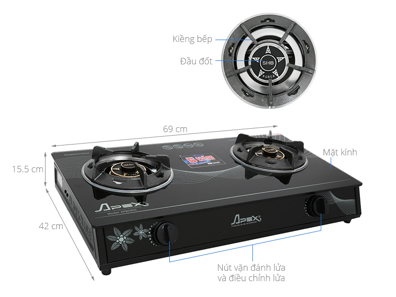 Bếp gas đôi Apex APB0816 sở hữu kiểu dáng đơn giản, hiện đại, sử dụng tiện lợi, xứng đáng có mặt trong ngôi nhà Việt.