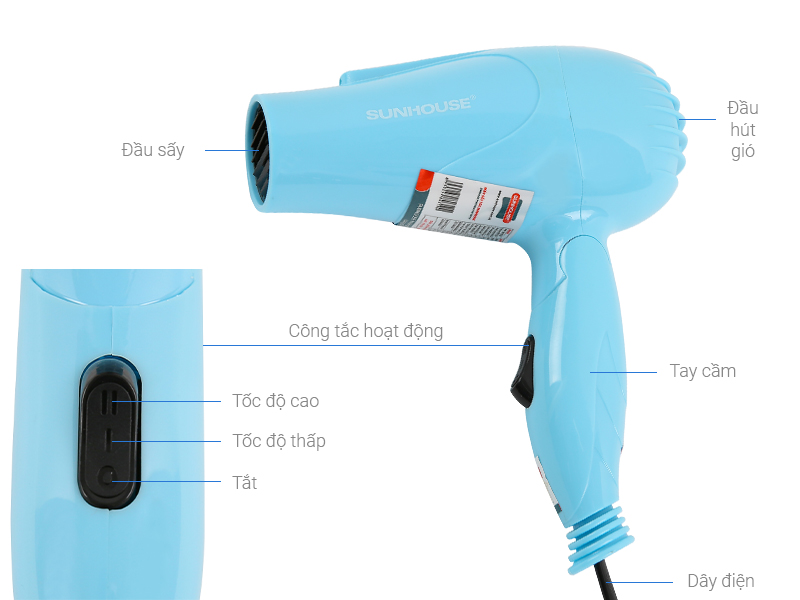 Máy sấy tóc Sunhouse SHD2305 đơn giản, hiện đại, chất lượng tốt, sấy tóc nhanh khô, lựa chọn đúng đắn cho người tiêu dùng Việt.